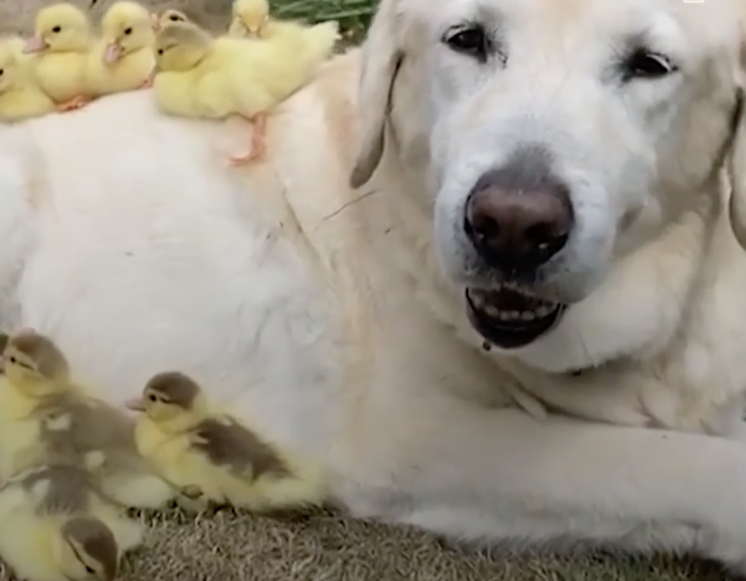 The breed is well known for being very affectionate, and generally, they get on well with kids. Often, they make for a preferred family furbaby and they tend to tolerate other dogs. In this case, Fred more than tolerates baby ducks: he can’t seem to get enough of being a doggie dad to them. Actually, adoption stories often seem very sweet, especially, when they cross different species.